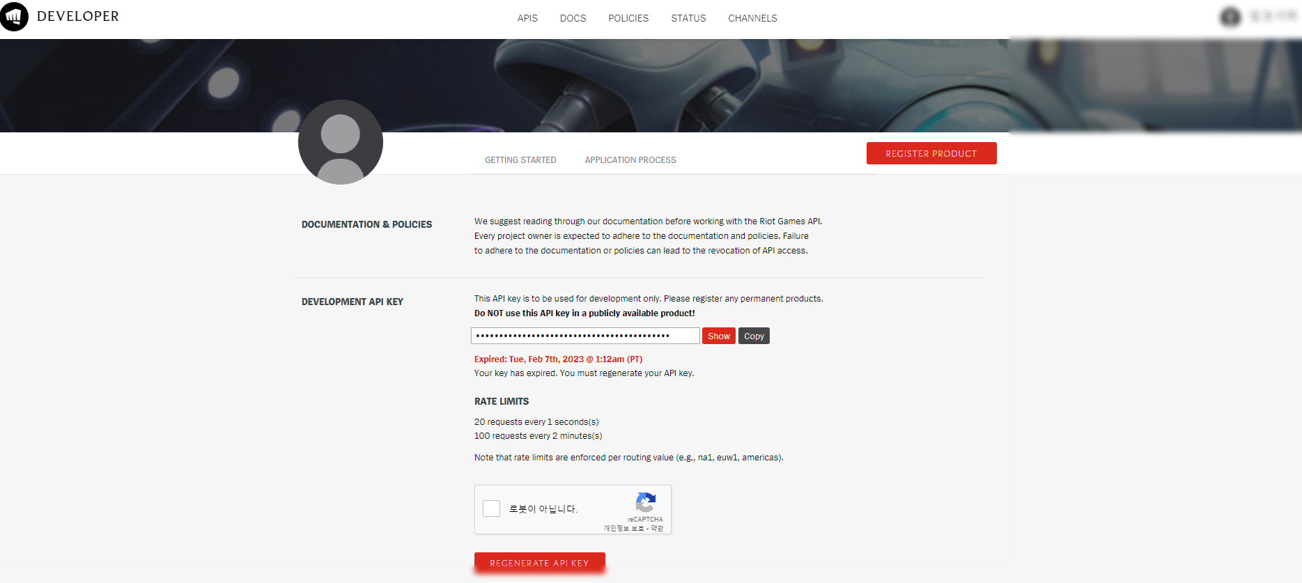 Riot API 를 사용하기 위해 어떻게 발급 받는지 알아보도록 하자