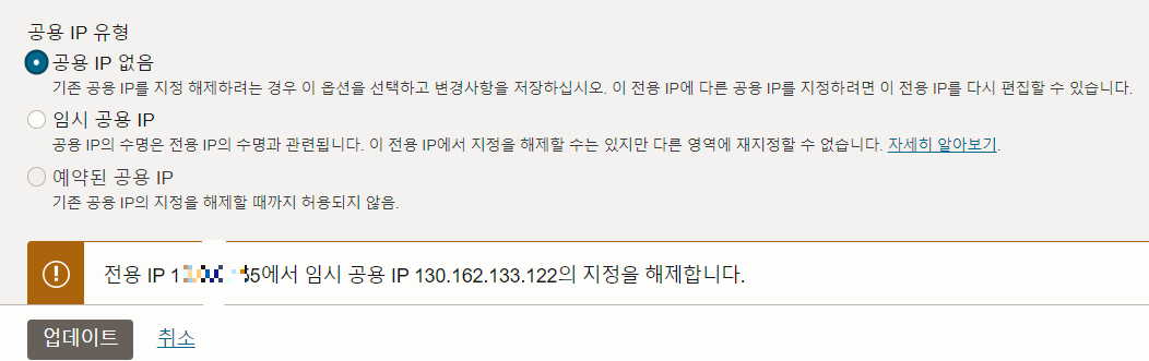 공용 IP 없음 -> 업데이트