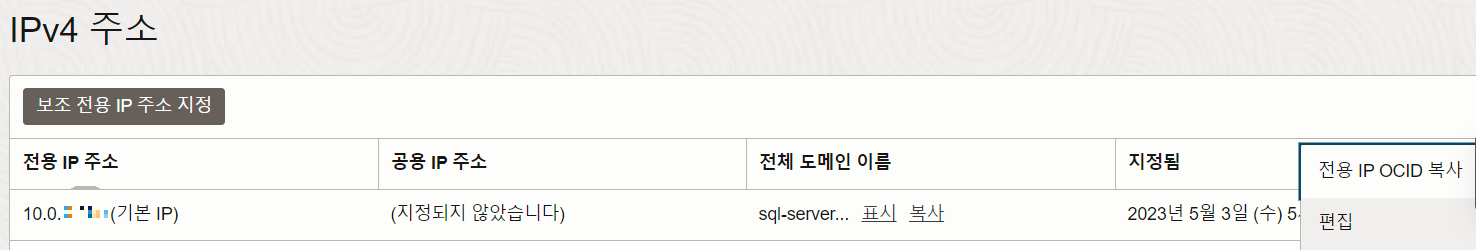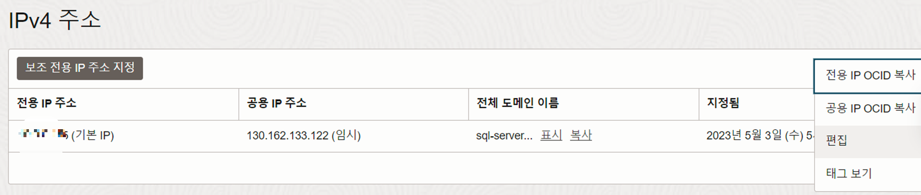 2) 고정 ip(공용 ip) 할당