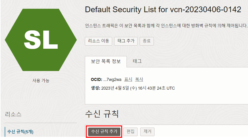 - 수신 규칙 추가