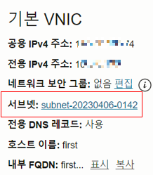 인스턴스 세부정보 -> 연결된 VNIC 선택