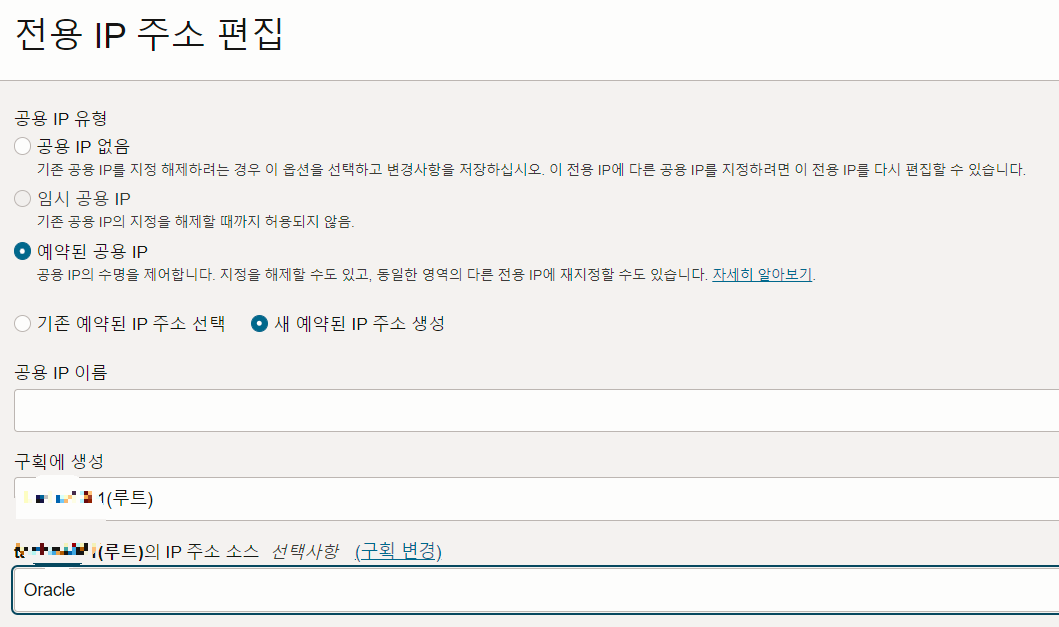 공용 주소 ip에 (예약됨) 이라고 출력되면 성공한 것이다.