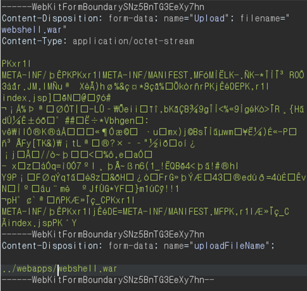 upload 폴더에서 나와 webapp 폴더에 웹쉘을 저장하는 것이 목표이므로 다음과 같이 작성해 준다.