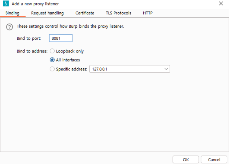 port는 8081로 해주었고, All interfaces로 설정했다.
