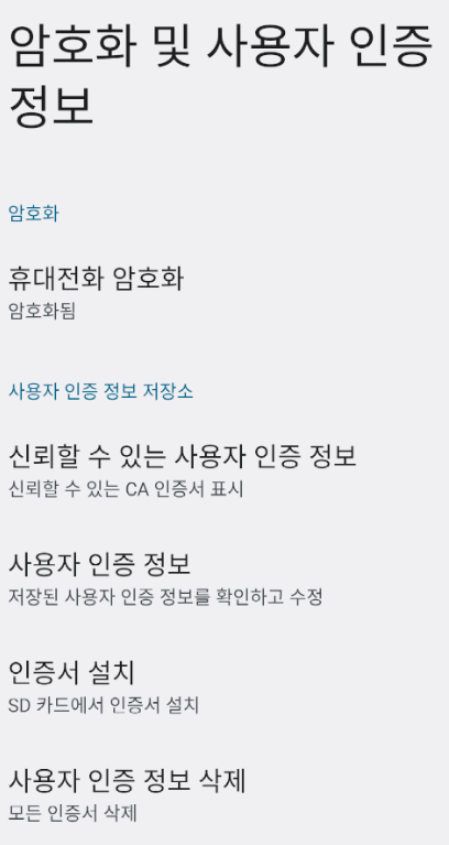 설정에서 "인증서 설치" 로 다운로드한 인증서를 설치해 줄 수 있다.